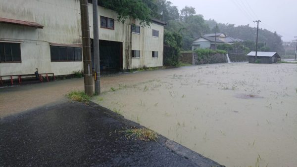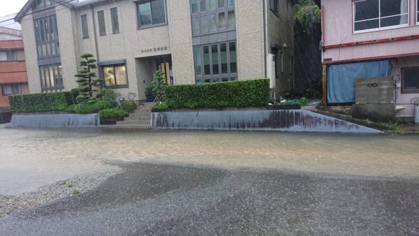 本社に繋がる一本道もずっと先まで浸かってしまいました。